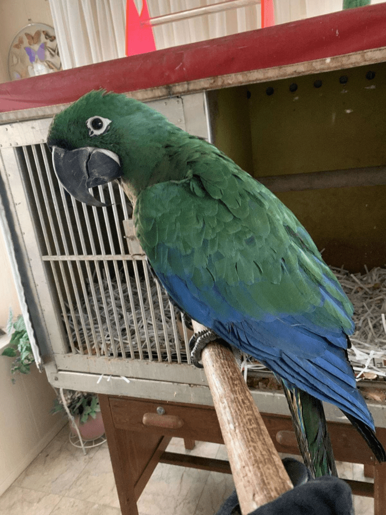 While this cross is similar to the Buffgold Macaw (Great Green x Blue and Gold), Miligolds are smaller, more widely available, and usually have a less rounded bare facial patch. They typically cost around $4,000 in the US.