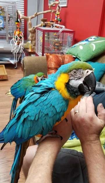 When allowed to socialize with a variety of people, blue and golds do very well adapting to various situations. They’re a popular headliner at bird shows, and many owners take them out and about town with the help of bird leashes and car seats. Blue and golds can be just as welcoming to other birds as they are to humans.