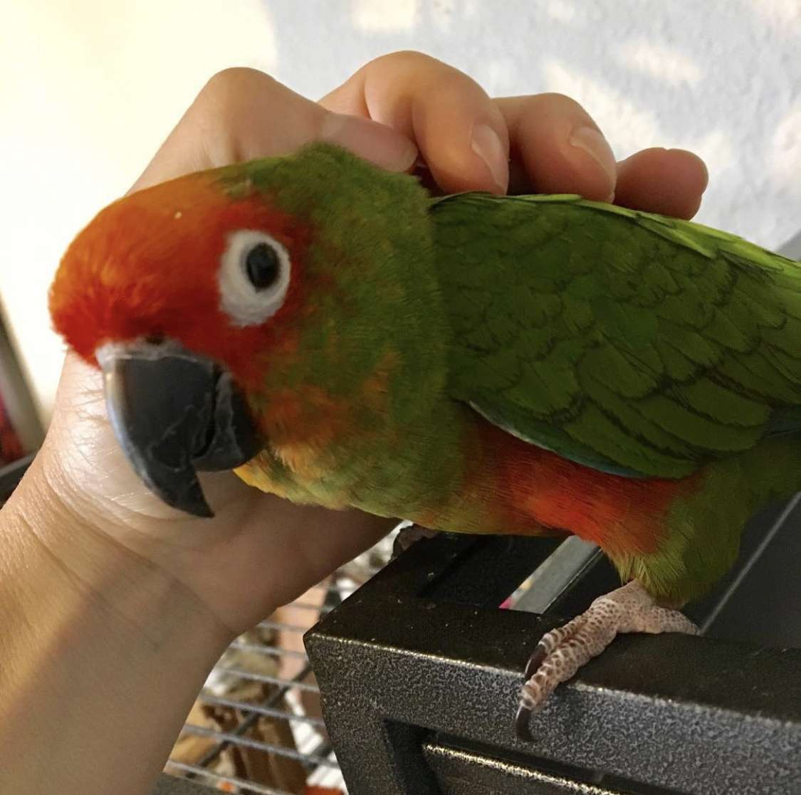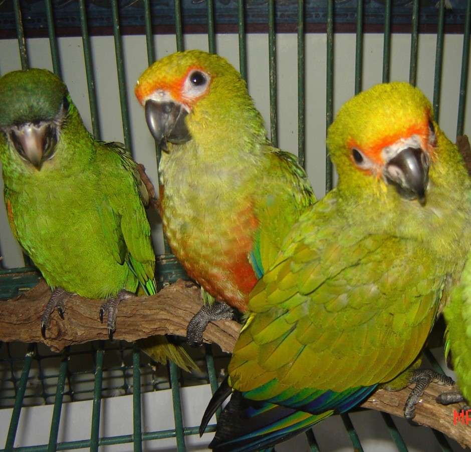 Golden-Capped Conures have become popular as pets, thanks to their attractive yellow, red and green plumage, sunny personality, and lively antics. This attractive bird is less noisy than most other conures. Its name comes from the yellow crown tinge on its head.