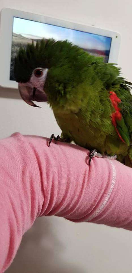 The Hahn’s macaw is one of two varieties of red-shouldered macaws. The noble macaw (Ara Nobilis cumanensis) is the other, and both are native to northern South America.